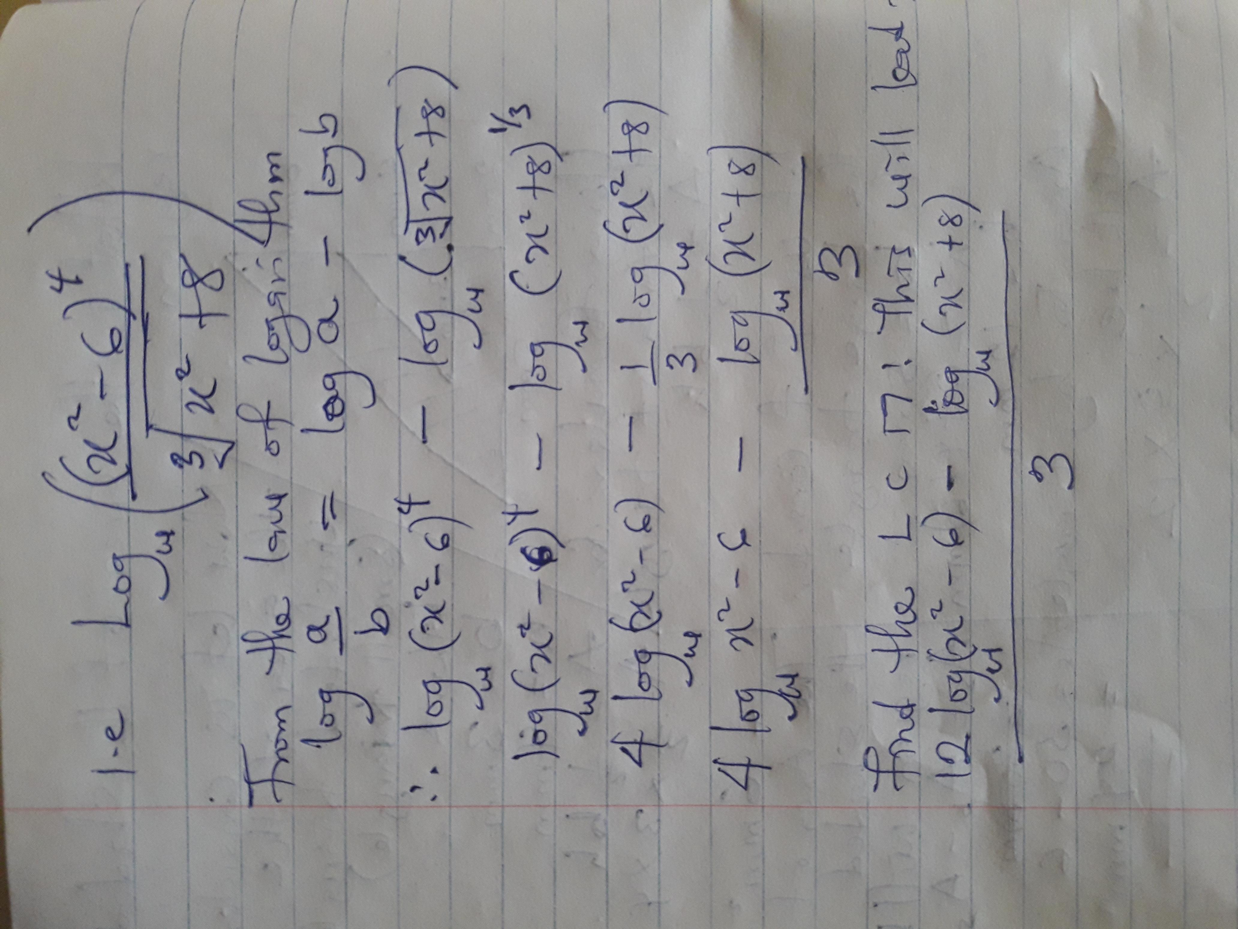 Which expression is equivalent to logw((x^2-6)^4/(cube root x^2+8))
