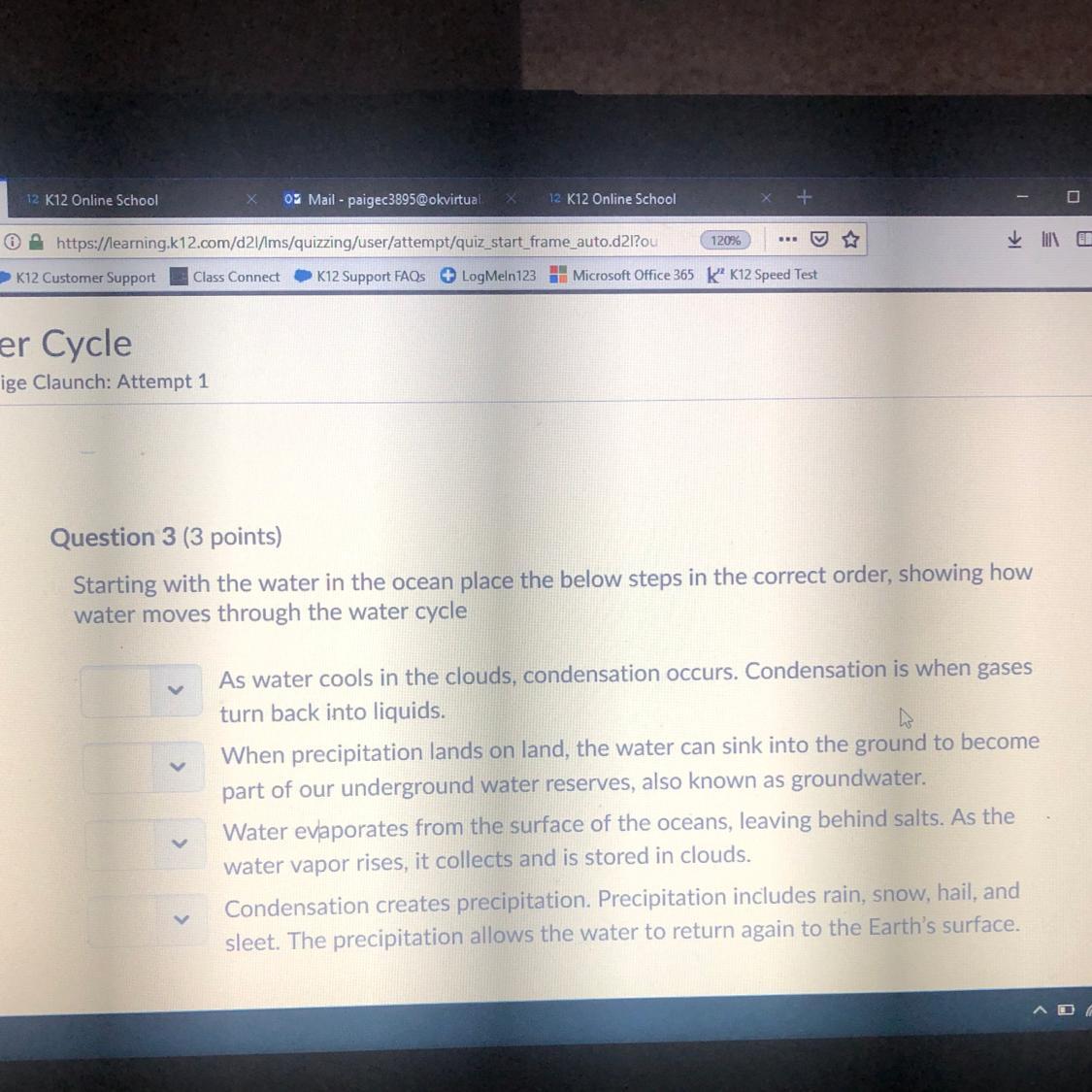 As water cools in the clouds, condensation occurs. Condensation is when gases turn back into liquids.