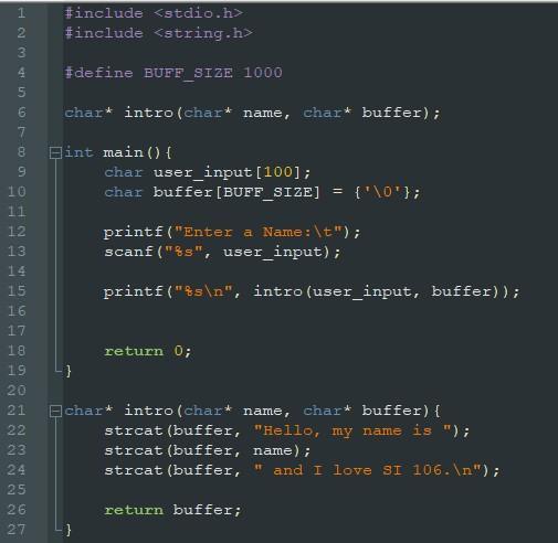 Import <em>string.h</em> to use <em>strcat()</em>.