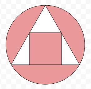 Now we need to find the 3 sort of semicircles around. That can be found if we subtract the area of the triangle from the area of the circle.
