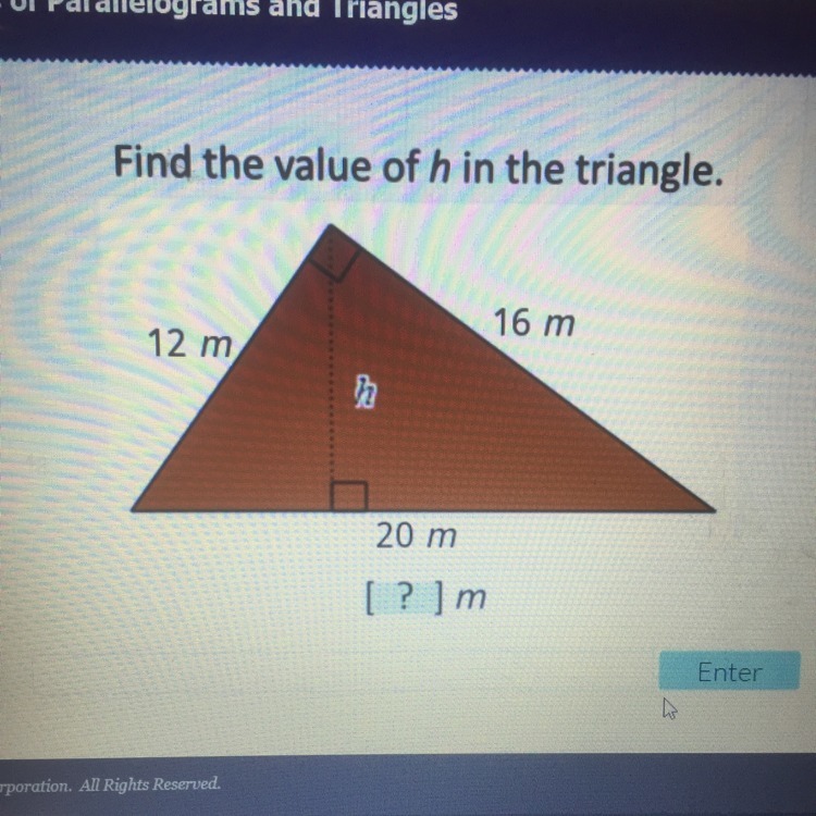 Find the value of h in the triangle