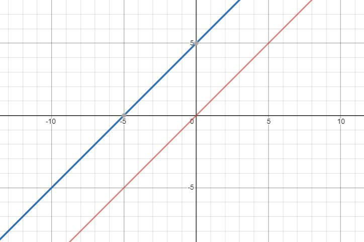 Parent function f(x) = x with f(x)+5 means the parent function will vertically shift 5 units up.