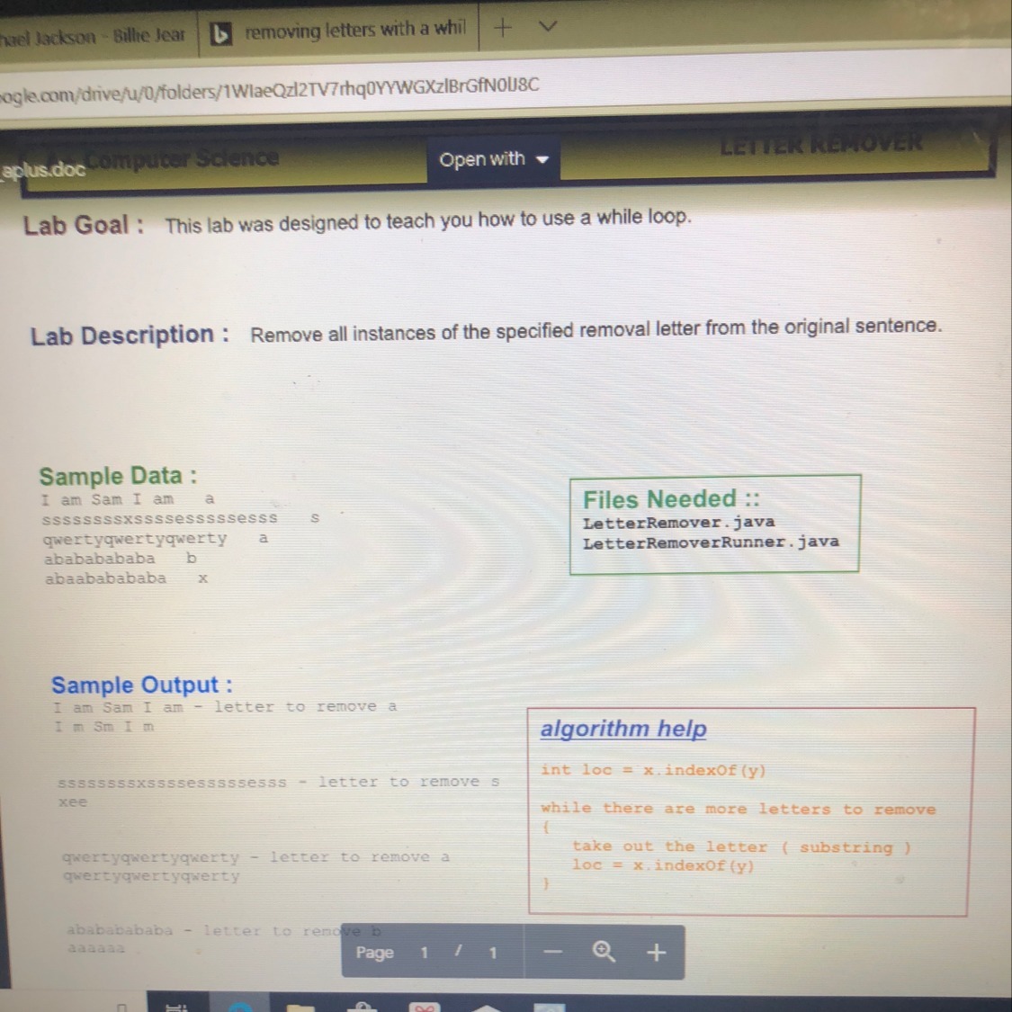 System.out.format("%s - letter to remove %c\n%s\n", s, c, RemoveLetters(s,c));