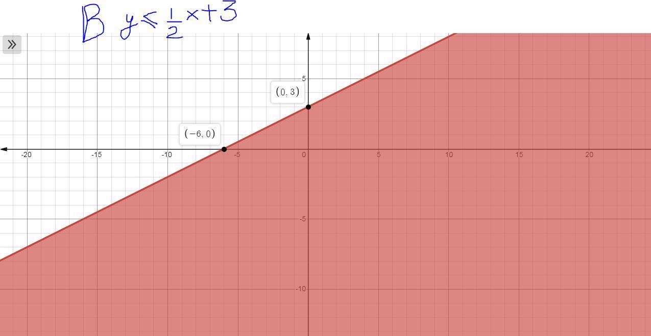 From the graph of the given function we see that the graph is a solid line passing through (0,3) and (-6,0) and the shading is towards the origin.