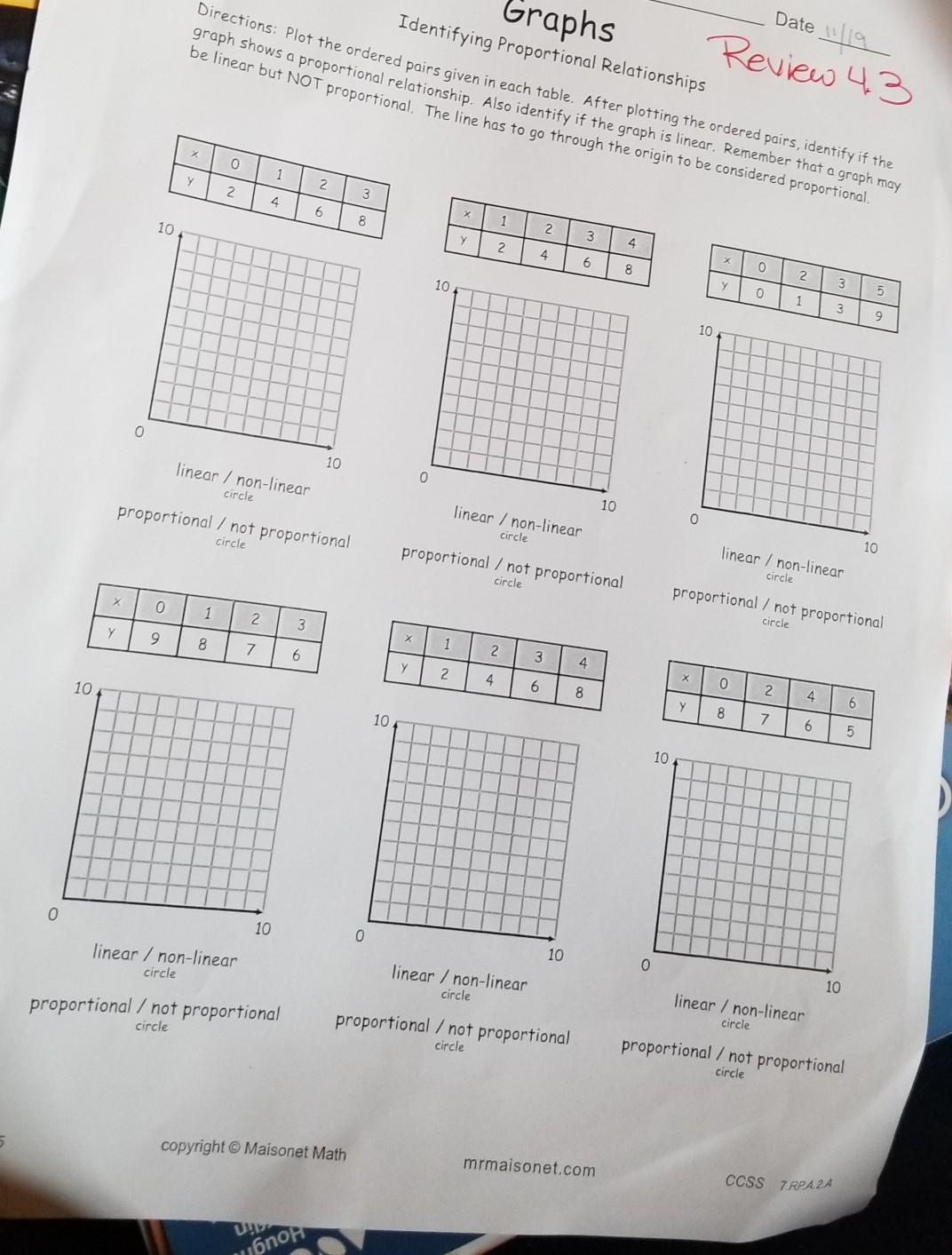 To know if it is proportional or not you take the y points and put them over their x points, and if all of them end up with the same number than it is proportional