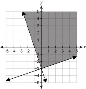 The solution of the inequality B is the shaded area above the dotted blue line