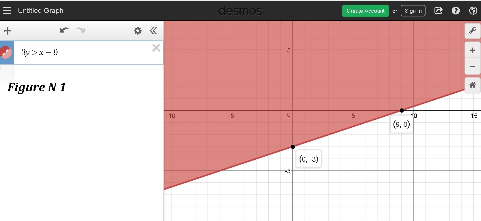 The solution of the inequality A is the shaded area above the solid red line