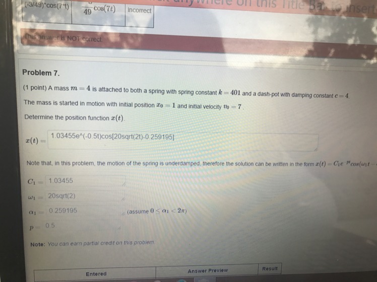 in the argument of cosine, when it should be a linear term. Aside from that, the best way to track down a mistake is to start from the beginning: