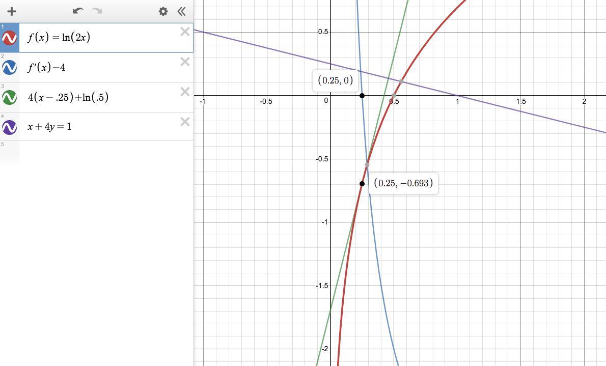 A line perpendicular this will have slope -1/4.