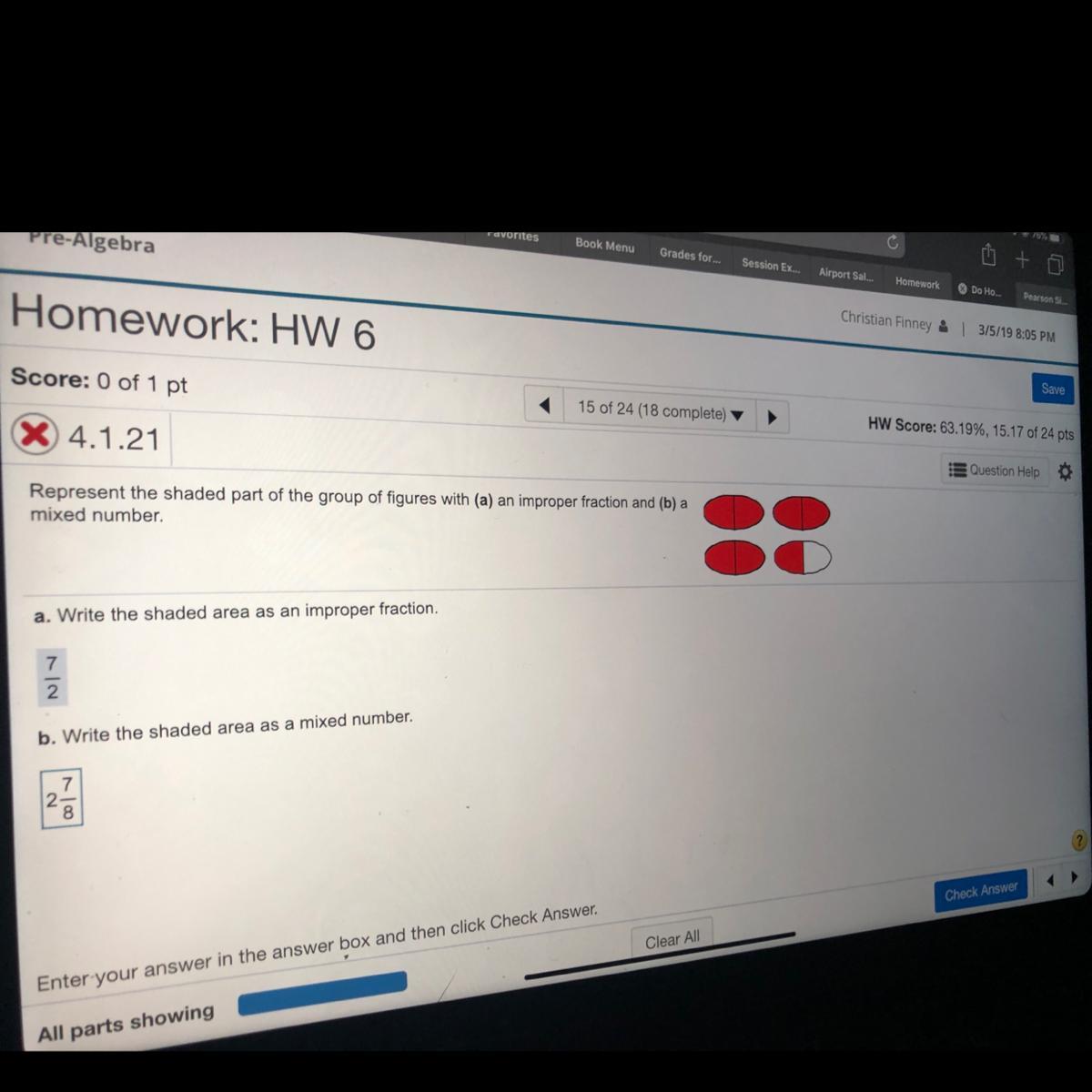 • George spent 1 ½ hours studying on Monday, and 1 ⅔ hours studying on Tuesday. If he spent ¼ of the total time studying math, wha