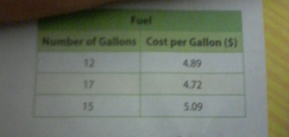 The cost of per gallon is $5.09 and the number of gallons of gasoline used is 15.