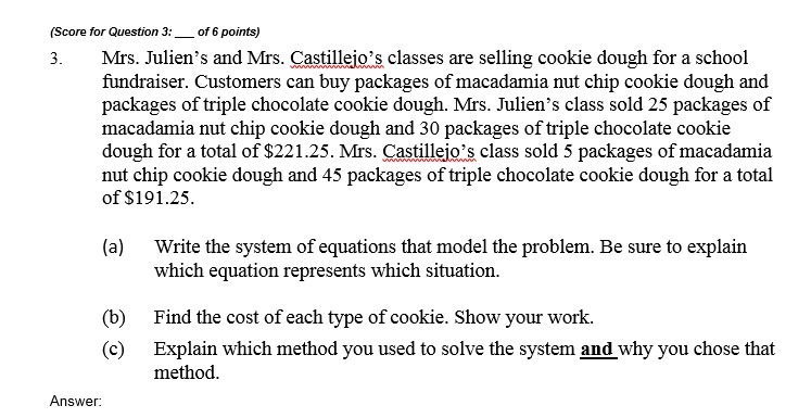 (a) Let the cost of the macadamia dough = x and cost of the triple chocolate dough = y.