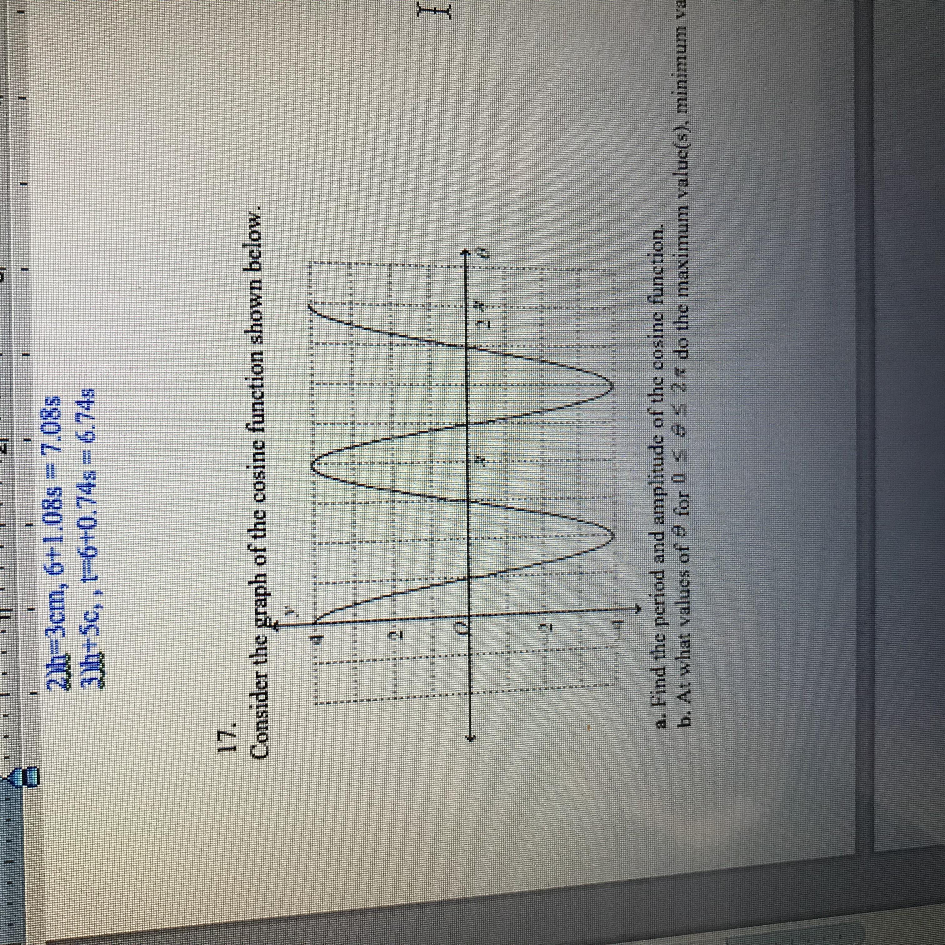Period is the time in which the function completes its one cycle. From the graph we can see that cosine started at 0 and completed its cycle at π. After π the same value starts to repeat. So the period of the given cosine function is π.
