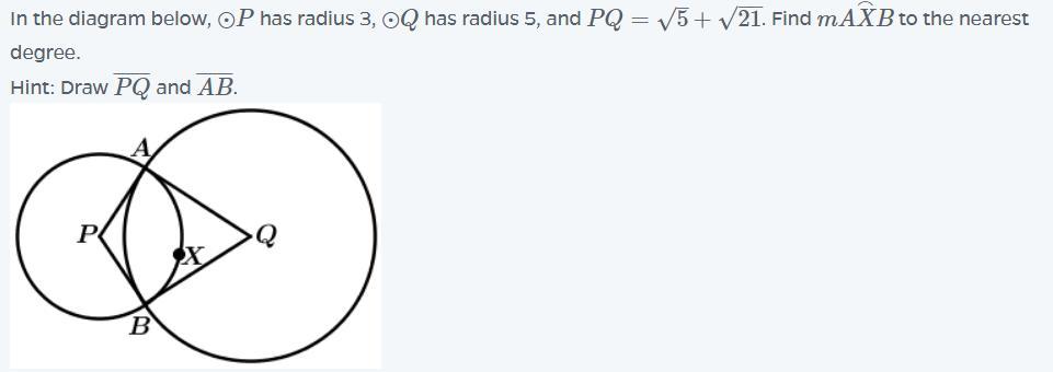 in triangle APQ sin angle APQ= opp/hyp=AQ(radius)/PQ=5/√5+√21