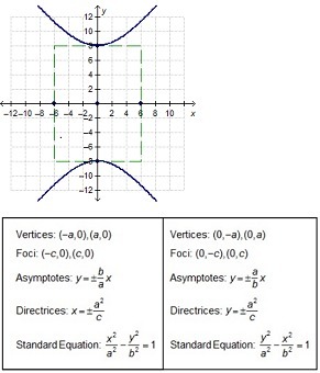 From the given figure it is noticed that the vertices of hyperbola are (0,8) and (0,-8). It is a vertical hyperbola.
