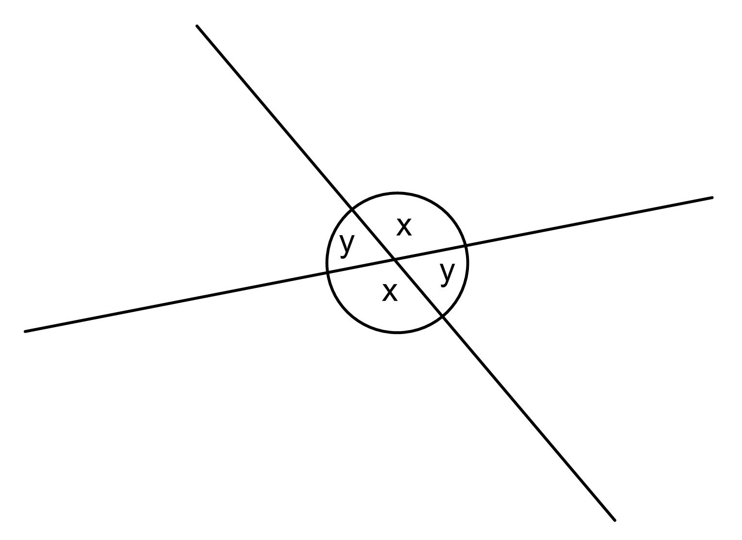 Refer to the diagram below, the intersection will definitely two pairs of vertical angles, x and y.