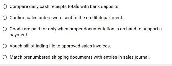 Procedure to implement: <em>Match pre-numbered shipping documents with entries in sales journal.</em>