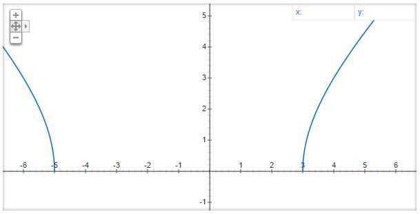 - In the graph, it can be seen that it is pointing upwards for x of -5 and less, or 3 and higher, thus, the interval is: