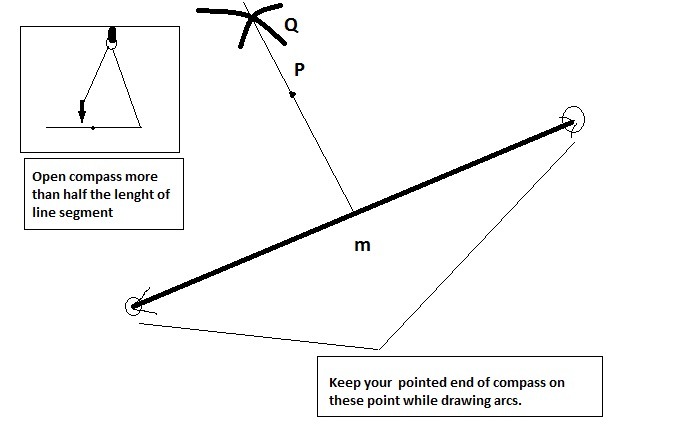 4) Finally draw straight line from point <em>Q</em> through <em>P</em> to the line m.