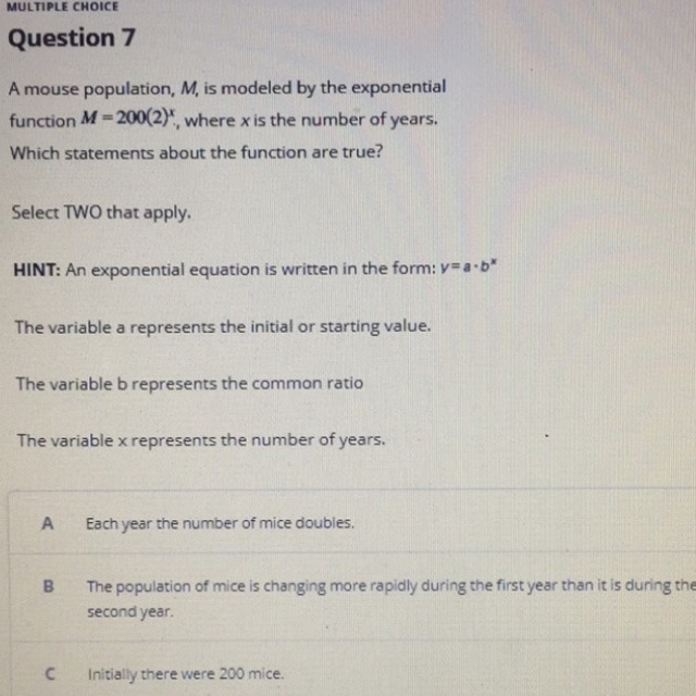 ⇒The initial population of mice(a) were 200 and each year the number of mice double