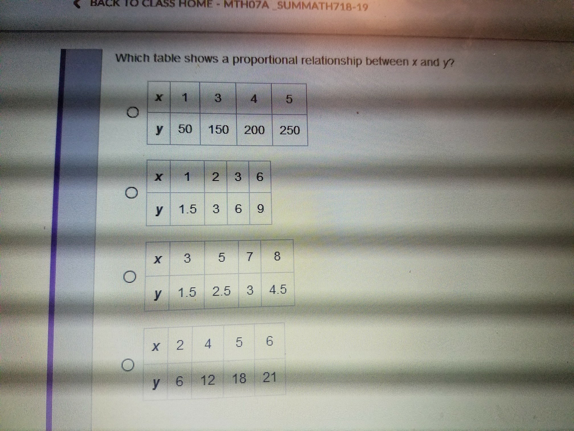 Which table shows a proportional relationship between x and y? PLEASE HELP ME