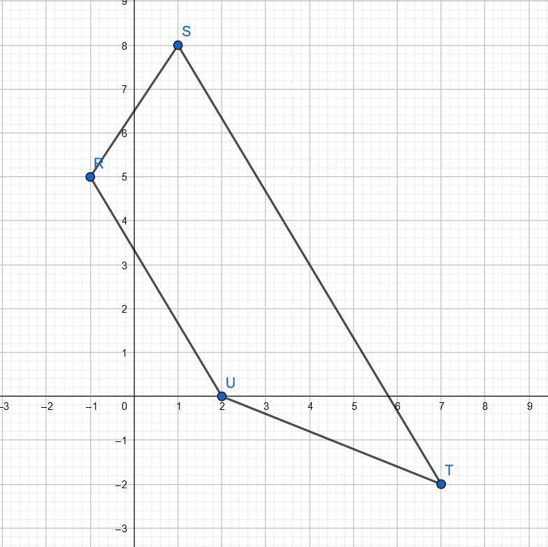 Given: trapezoid RSTU with vertices R(-1, 5), S(1, 8), T(7, -2), and U(2, 0).