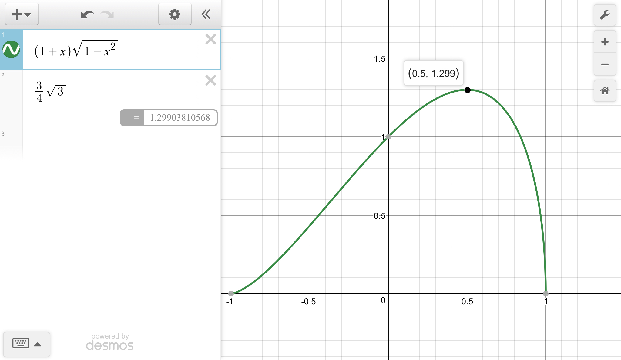 A = (1 + 1/2)√(1 - (1/2)² = (3/2)√(3/4)