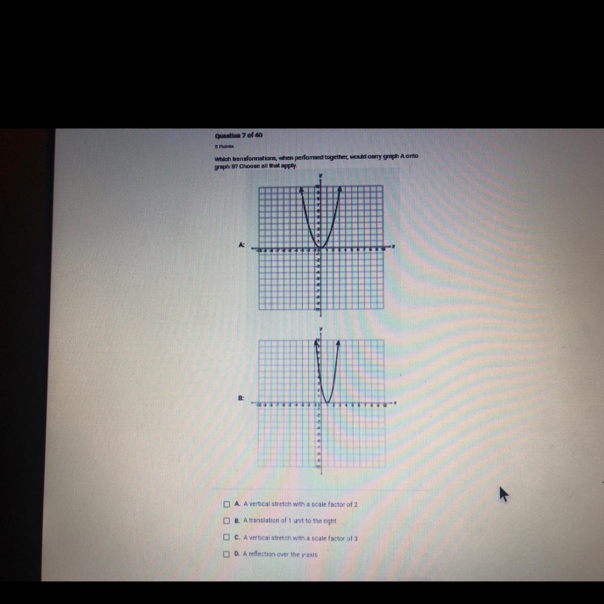 If means the graph A stretched vertically by factor 3 and translate 1 unit to the right.