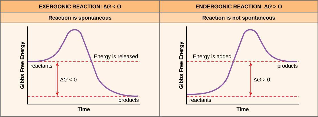 Exergonic reactions do not need any input of energy, and therefore are happening spontaneously. On the other hand, endergonic reactions need an energy input. These reactions are often paired = coupled reactions.