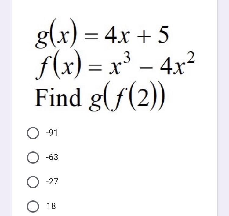 g(-8)= 4(-8) + 5 = -32 + 5 = -27