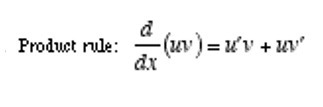 product rule of derivatives (see picture), where the derivative of y is equal to the derivative of the first factor, x, times the second factor,
