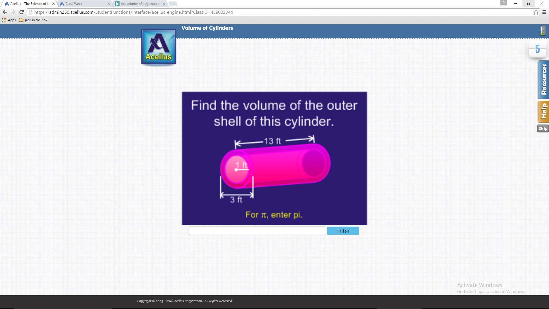 volume of container: