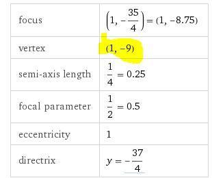 y = x^2 - 2x - 8 vertex = (1 , -9)