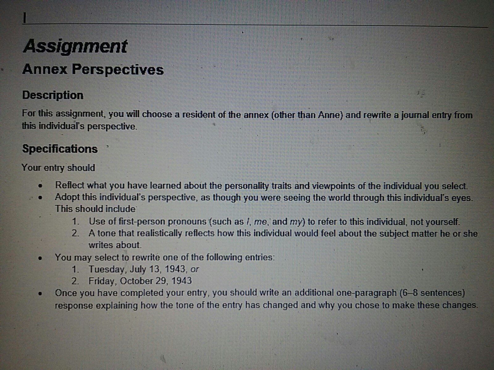 REALLY NEED HELP WITH THIS. SWAMPED WITH HOMEWORK RN. (FROM "THE DIARY OF ANNE FRANK")