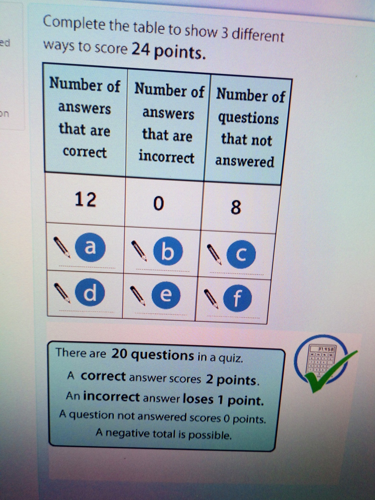 Let the -1 point questions = y