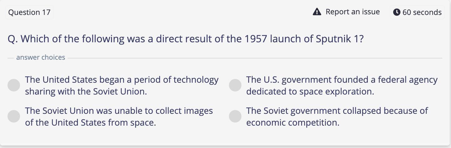 The correct option is 2 which is The U.S. government founded a federal agency dedicated to space exploration.