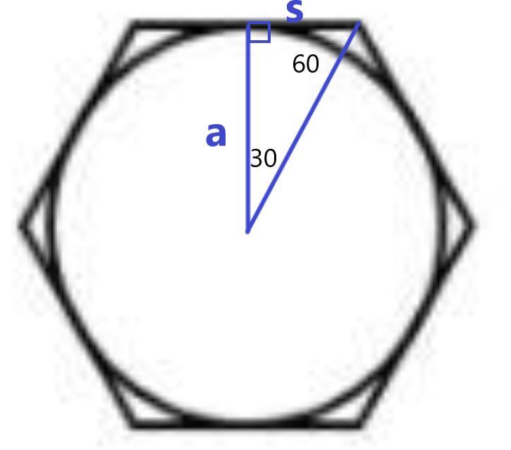 Apothem (a) and half of the side (s) make a 30-60-90 right triangle.