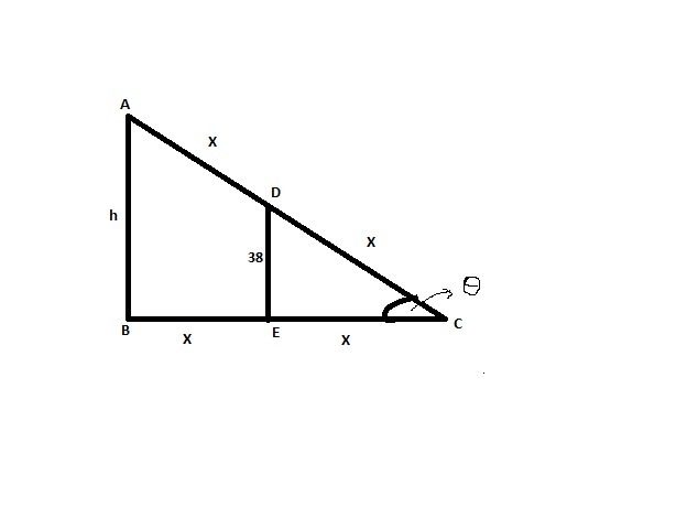 A length of rope is stretch between the top edge of the building at stake in the ground the head of the state is at ground level the rope also touches a tree that is growing halfway between the state and the building if the tree is 38 feet tall how tall is the building