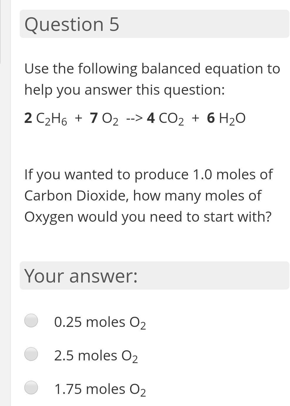 The number of moles of carbon dioxide is reduced to 1 mole. You could simply divide seven by 4 to find your answer (Since 4 was divided by 4 to make 1), but let's use the ratio method just in case questions in the future aren't this convenient: