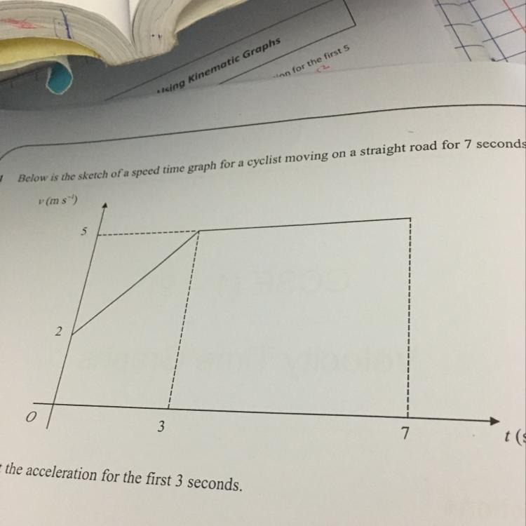 Simply find the area under the velocity curve. Over the first 3 second interval, the area is that of a trapezoid with bases 2 and 5, so that area/distance traveled is . For the last 4 seconds, the area/distance is .