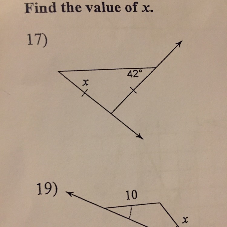 17. The angles x and 42 degrees are base angles of an isosceles triangle so they are congruent.