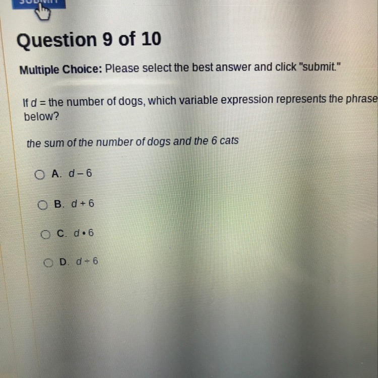 On the left side of the equation, the model shows we have 3 "x's", and 6 "1's". Let this represent: