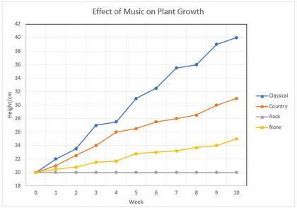 You use line graphs to track changes over time. Line graphs are better when the changes are small. They are also more useful when you want to compare changes over the same period for more than one group, for example, plants exposed to music and a control group.