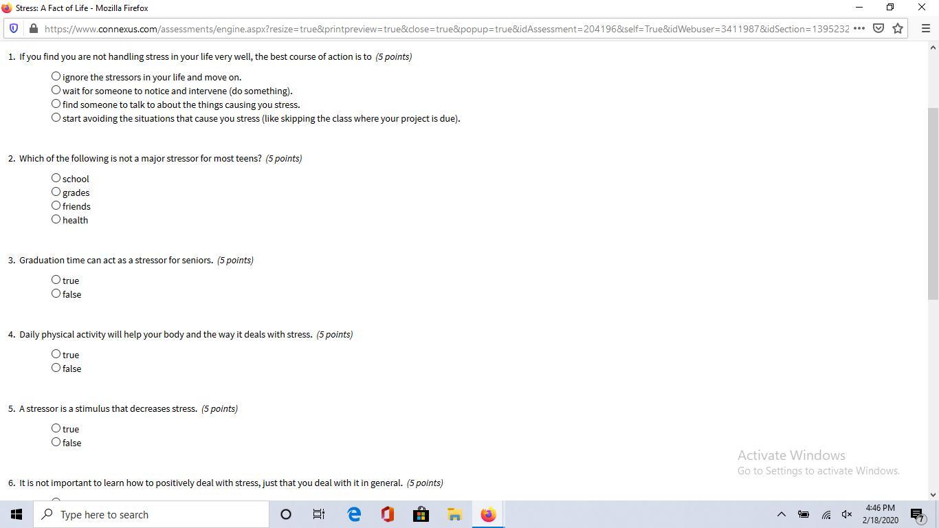 2. Which of the following is not a major stressor for most teens?
