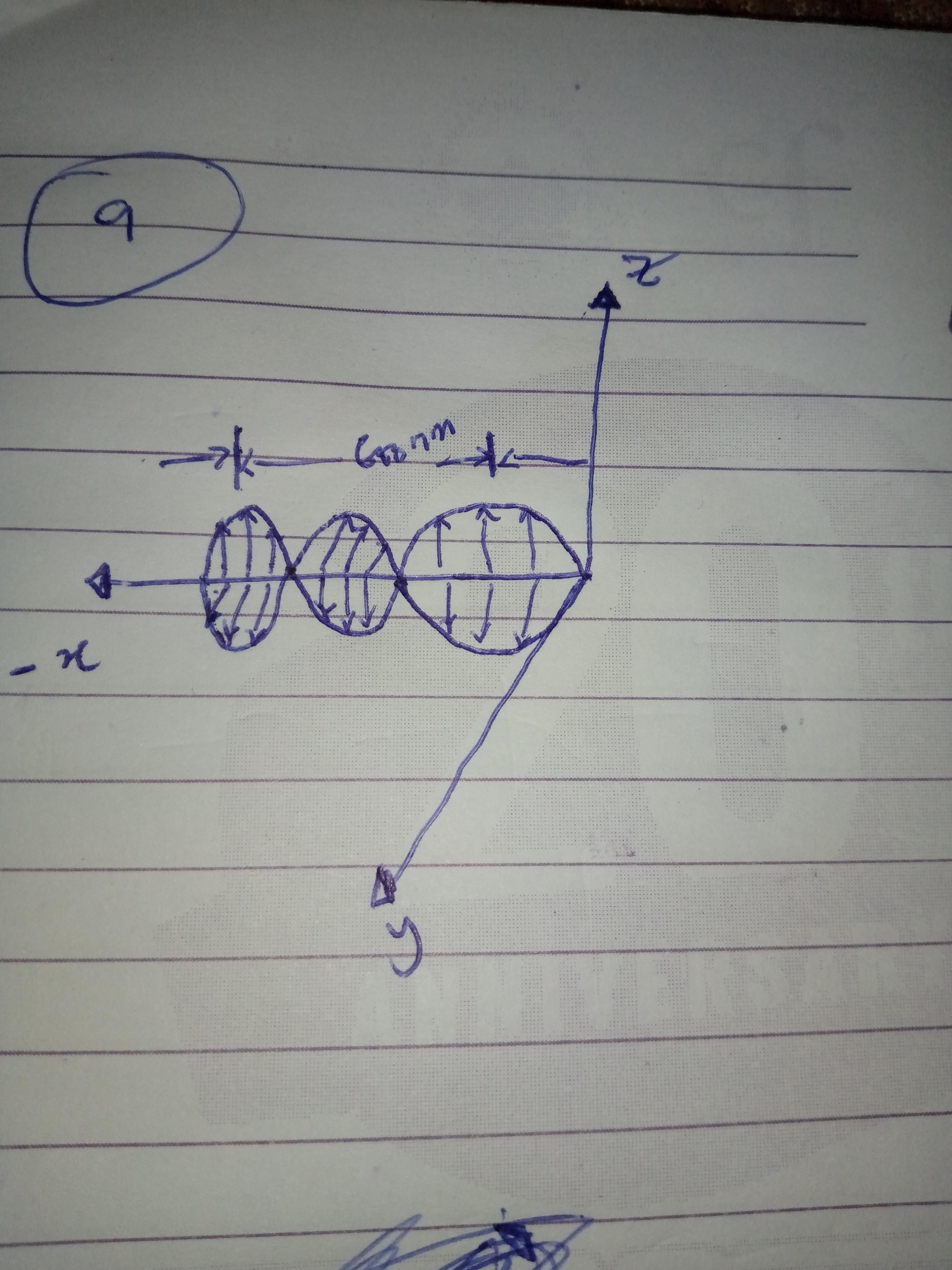 Yellow light with wavelength 600 nm is travelling to the left (in the negative x direction) in vacuum. The light is polarized al