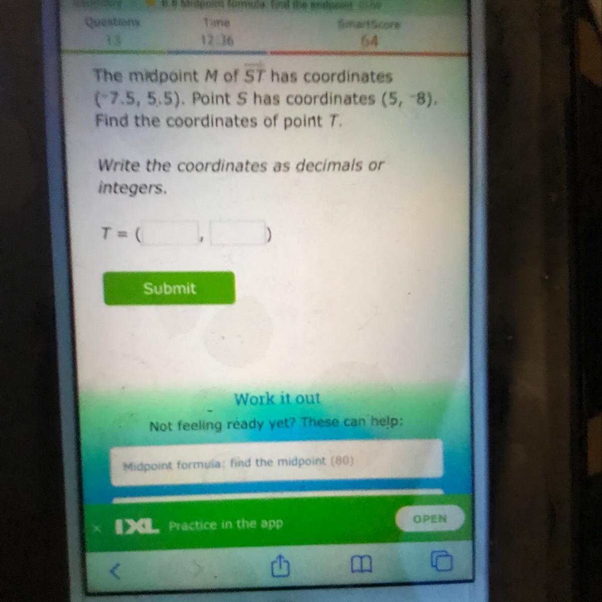 Now, let's find y2. y1 is just -8, and the entire expression for the y-coordinate of the midpoint is equal to 5.5. So: