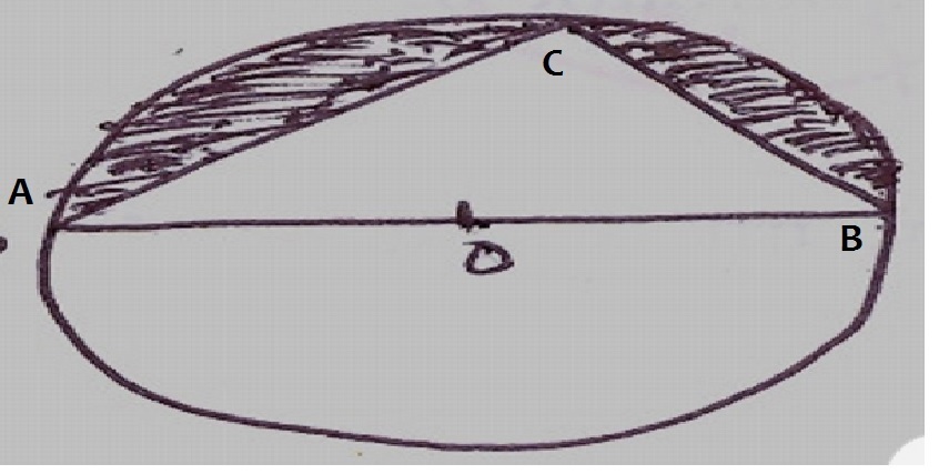 Keywords: area of shaded region, center, AB=7cm, AC=24 cm, figure, radius of circle, arc length, radian, central angle, intercepted, circle, circumference, sector of a circle, minor sector, major sector, segment, angle.