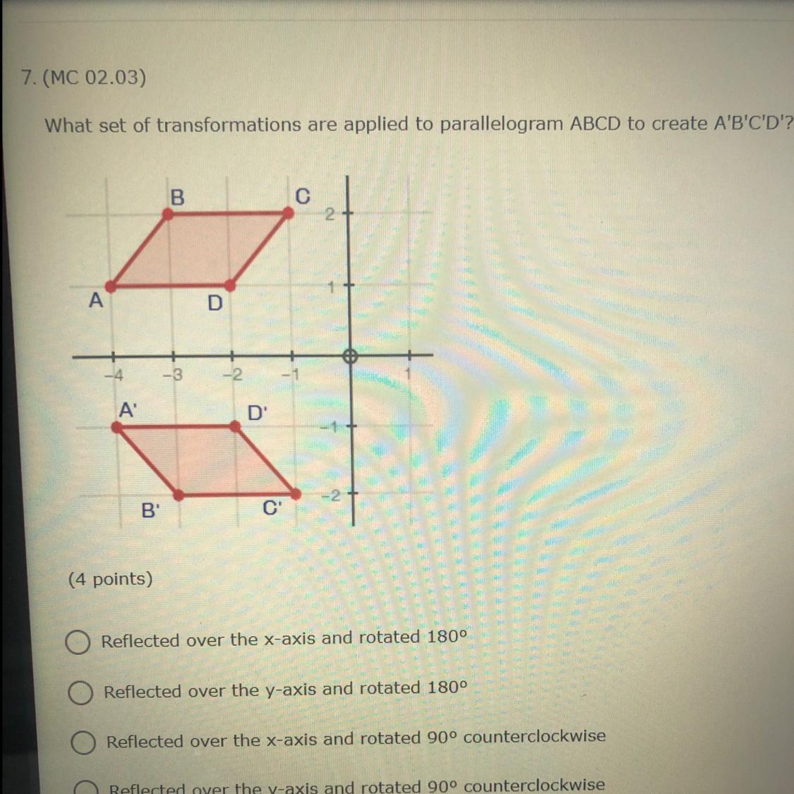 If I'm doing this correctly, the answer should be reflected over the y-axis and rotated 180°.