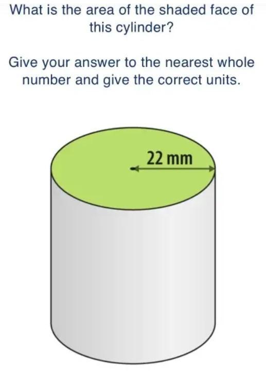 The area of the shaded face of the cylinder is 1,520 mm².