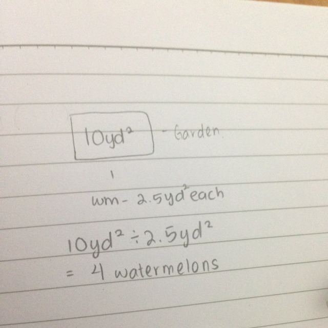 Olivia garden is only 10 yd2 and the watermelon plants she wants to grow require 2.5 yd2 each how many plants watermelon plants